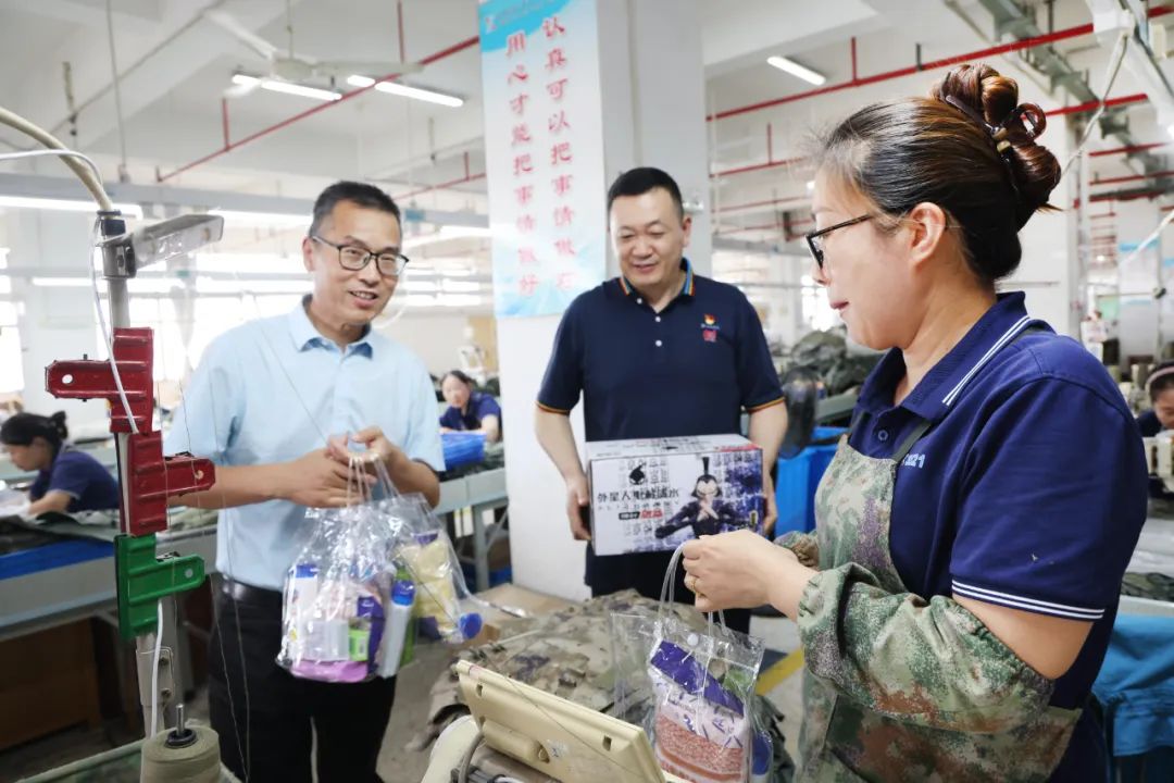 际华3521党委书记、执行董事朱国林与工会主席汤福建一行,深入装具车间一线,为坚守岗位的职工送上防暑降温清凉饮料和洗护用品,将企业的关怀传递到每一位劳动者心中。他代表公司党委,对全体职工战高温的敬业精神和辛勤付出表示衷心感谢,公司将持续做好防暑降温保障工作,为大家创造安全舒适的工作环境。