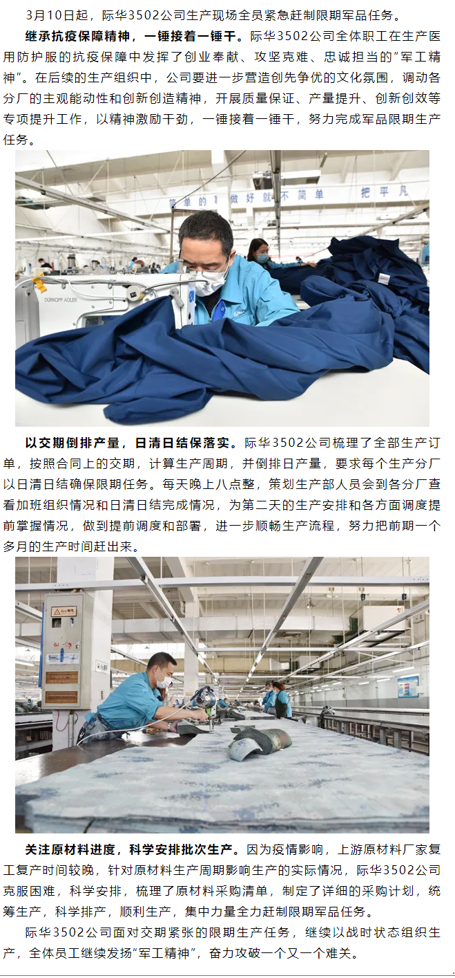 际华3502: 全力赶制限期军品任务