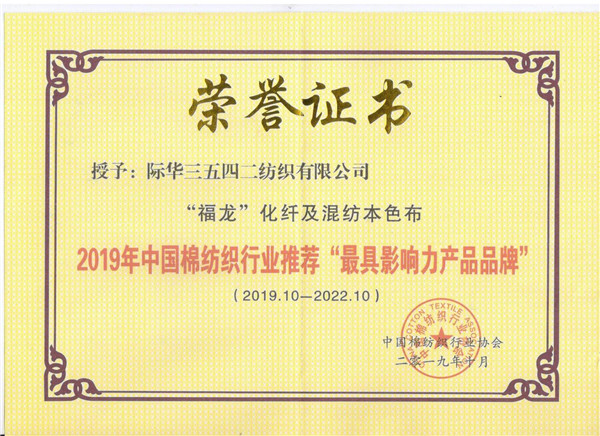 近日,由中国棉纺织行业协会主办的“最具影响力产品品牌”评选结果揭晓,际华3542公司“福龙”化纤及混纺本色布荣获棉纺织行业“最具影响力产品品牌”称号。