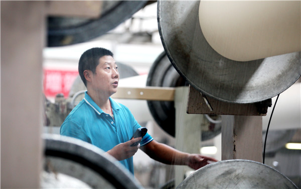 “班长,昨天两个班都完成班产了啊,实在不行我们今天就把5台车都开起来,这样更保险一些。”“就是,班长,你赶紧去问问调度5#车开什么品种。”“嗯,大家跟我想到一块儿去了,一会儿开完早会我就去找调度。”看到车间公示栏上张贴的竞赛奖励光荣榜后,丙班员工个个精神振奋,暗自鼓劲,准备大干一番。早会一结束,大家就三步并作两步来到自己的车位上,在认真做好接班工作后就迅速进入战斗状态。只见大家绑纱的绑纱、拉轴的拉轴、下绞线的下绞线,整个浆纱工序呈现出热火朝天的景象。熊海利只要一有时间也急忙来到浆纱现场,又是帮忙看车,又是协助起机,一个班下来,忙得连喝水的时间都没有。在大家的共同努力下,当天早班,丙班浆纱小组以1965匹的高产完成了目标任务。