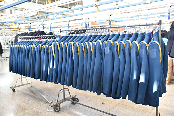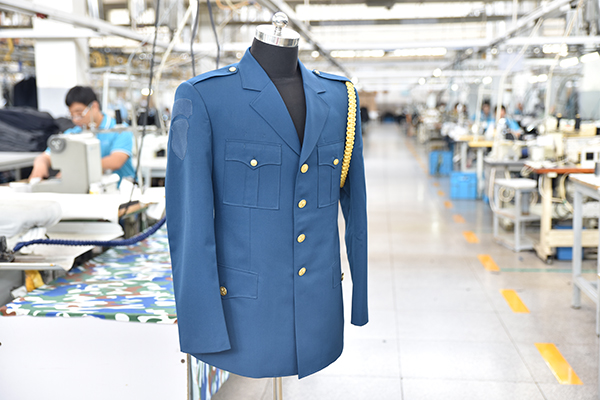 一是成立阅兵服生产指挥领导小组。为确保此次任务保质保量按期完成,公司成立了以总经理为组长、生产营销副总为副组长的阅兵服生产指挥领导小组,领导小组下设办公室、量体服务、材料筹措、技术检验、生产安排、物流发运等小组。领导小组针对产品研发、技术准备、量体套穿、材料准备、生产安排、保密等工作,每天召开专题会议,对各项具体工作进行部署,设定时间节点和考核责任人,确保生产顺利进行和按期交货,启动8个班组投入500余名职工参与生产。