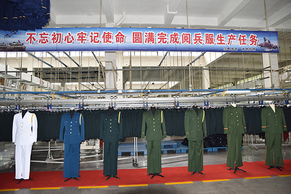 4月份,际华3502公司领导班子召开会议:今年的大阅兵,公司肯定有生产任务。为了保证顺利完成这项政治任务,公司召开了专题办公会。公司党委书记、执行董事周长胜,总经理冯蕾要求营销系统要密切关注阅兵服装的相关信息,做到信息早掌握、工作早推进;职业装研究院整理出以往阅兵服装的技术资料,提前消化,并结合掌握的信息进行技术、标准和设计的预测工作;生产系统做好七、八、九月份“打硬仗”的计划,在设备、人员上做好准备。