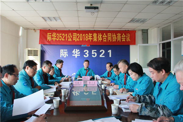 际华3521公司在贯彻集团年会精神中,将党的群团优势转化为企业人本优势,维护职工主体地位和合法权益,让员工过上体面生活,尊严感、幸福感、荣誉感和归属感进一步增强。在是日举行的集体协商中,以总经理为首席代表的行政方7名代表和以工会主席为首席代表的职工方7名代表,在党委书记鉴证下,根据《劳动合同法》和《工会法》、《集体合同规定》等法律法规,就劳动报酬、工作时间、休息休假、劳动安全卫生、职业培训、保险福利等事项进行平等协商。